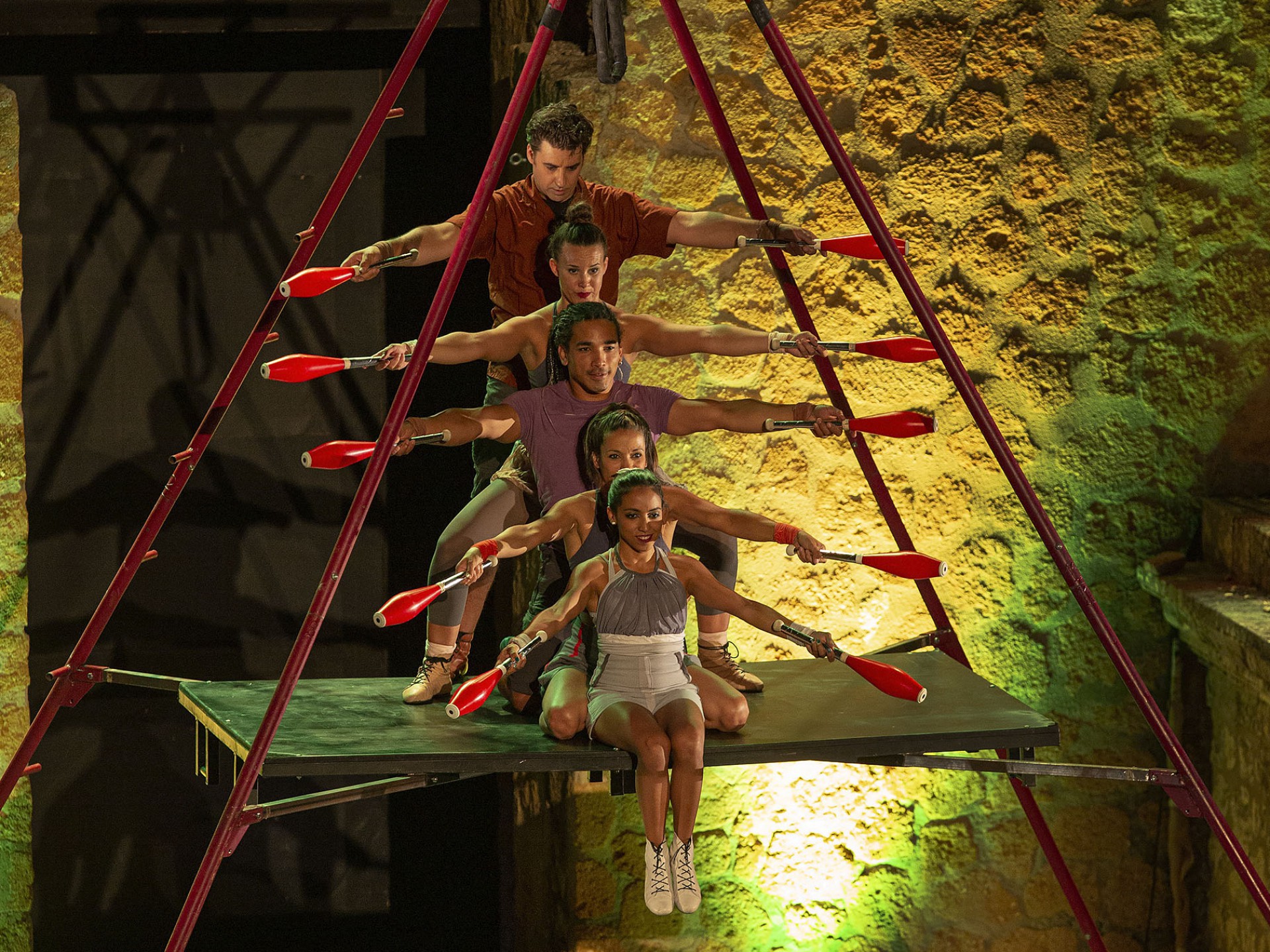 El espectáculo transcurre dentro de una estructura móvil de cinco metros de altura, que permitirá a los artistas acercar al público sus destrezas como si estuviesen en la misma pista. Esta peculiar troupe cirquera comenzó sus andanzas entrenando en las calurosas temperaturas andaluzas, encontrando su propio lenguaje dentro de la diversidad y el carácter multidisciplinar.