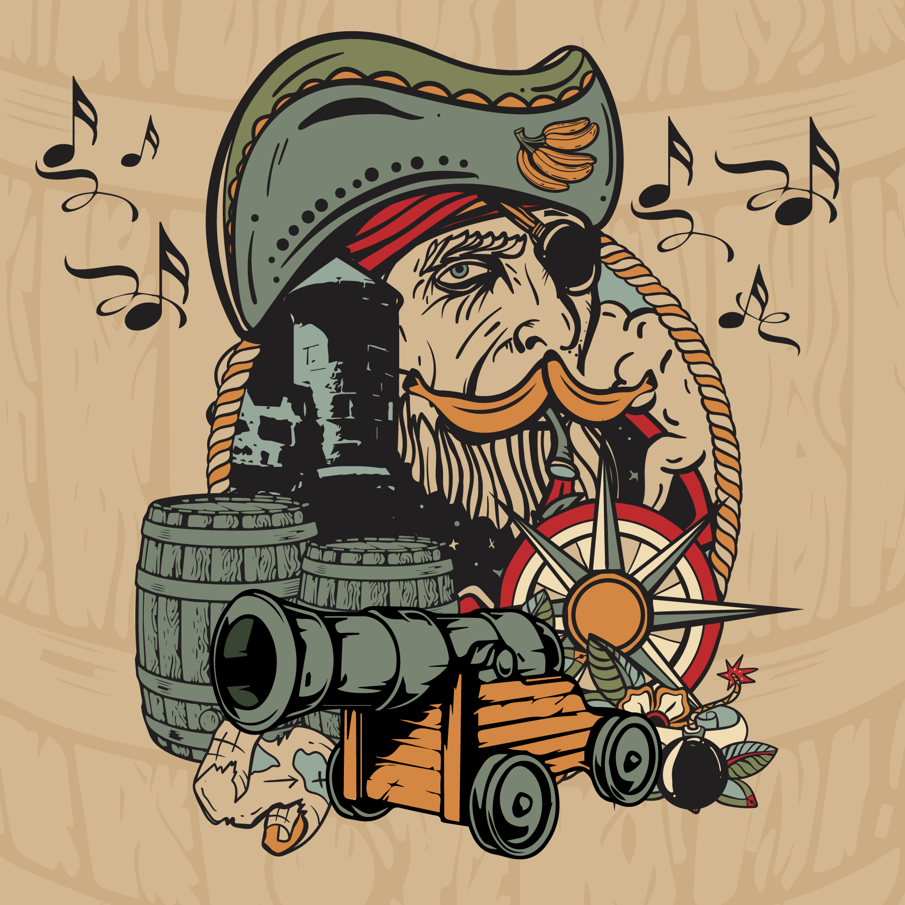 Piratas, taberneras, músicos, lunas, alisios.
