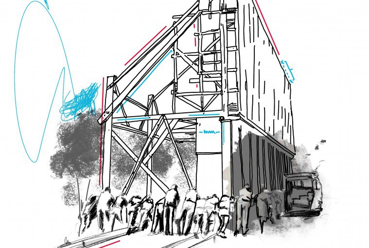 A los pocos años de llegar empezó a construir una extraña estructura en su campo: una reconstrucción escenográfica de la casa donde vivía en Polonia. Pero no la edificó para vivir en ella. Sino para representar algo. Una obra de teatro. Invitó a los vecinos a que la vieran.