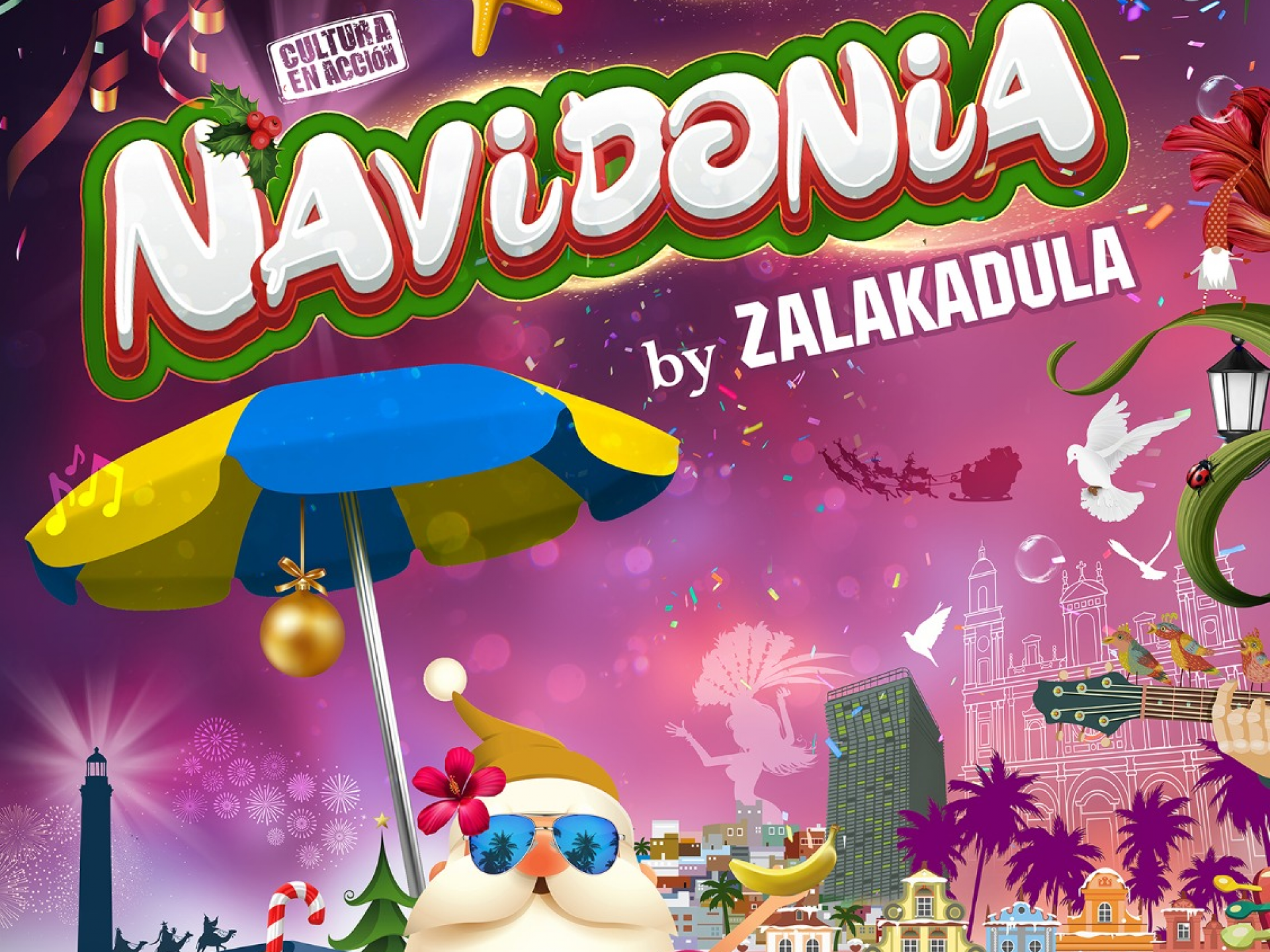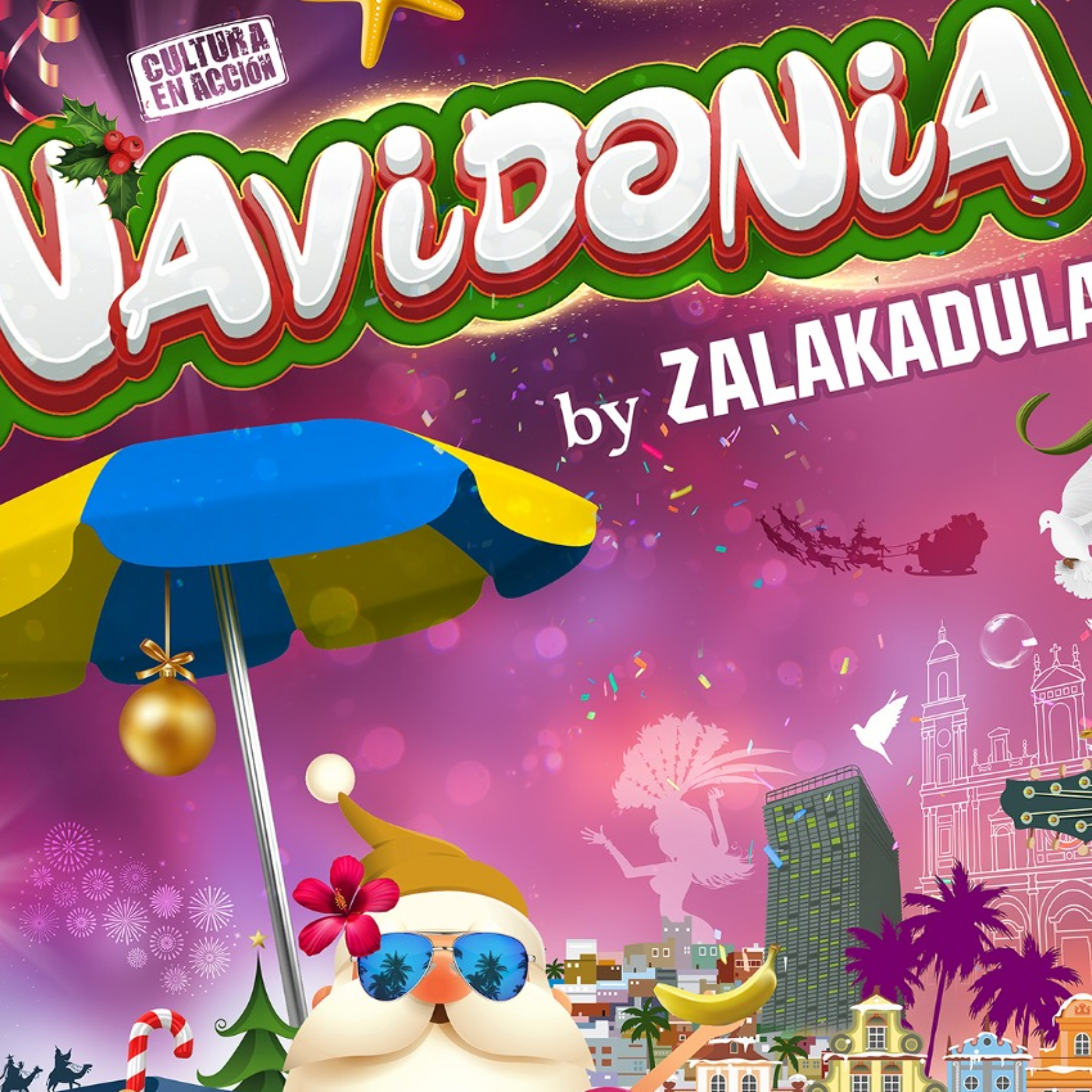 'Navidonia' es un homenaje cómico y festivo dedicado al espíritu navideño con el objetivo de catalizar esa fuente de energía positiva y teñir de ilusión los rincones y los corazones de esta ciudad, a través de un espectáculo imaginativo y multidisciplinar creado para disfrutar en familia.