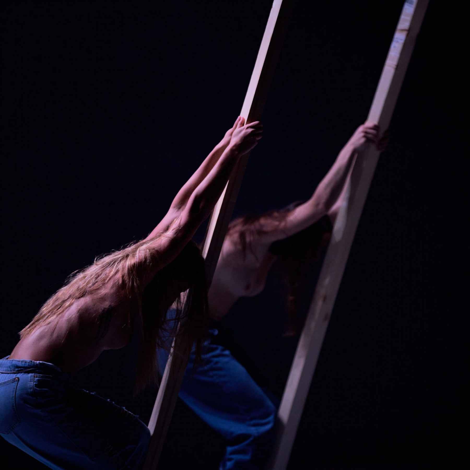 Esta obra, pensada para cinco intérpretes representa la dicotomía necesaria para la existencia. La danza, la palabra, la distorsión de la luz y del sonido. Por un lado el cuerpo animal que danza y por otro, la imagen a la que se ancla; un cuerpo físico y otro digital; lo sólido y la luz.