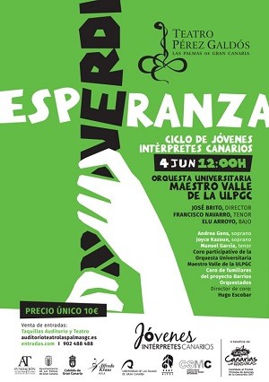Esta cita, que lleva por título Verdi Esperanza, es una idea original de Juan Francisco Parra y tiene por objetivo homenajear a los cantantes diletantes líricos que sin haber recibido un proceso formativo académico han desarrollado una carrera profesional de excelencia en Canarias.