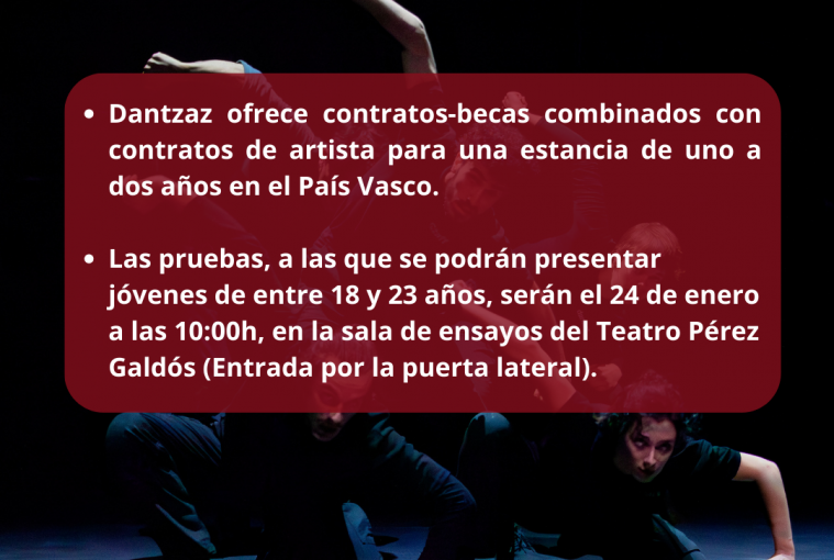 La compañía Dantzaz ofrece contratos-becas combinados con contratos de artista para una estancia de uno a dos años en el País Vasco.