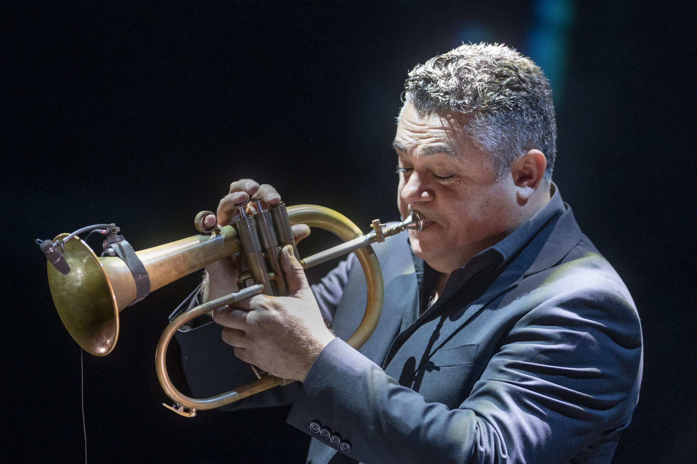 Fliscorno o flugelhorn en inglés, de ahí el juego de palabras que usa su creador para bautizar evento y disco, “es un concepto que he creado para homenajear a un instrumento que me apasiona y con el que empecé en la Banda Juvenil de Música de Firgas. Le debo mucho y de ahí este homenaje que consiste en algo tan sencillo como hacerle justicia hoy en día, darlo a conocer, ponerlo en valor. Vamos al teatro a hacer música con él, apoyándonos en una bonita historia, también creada para este cometido, con la que conseguiremos poner este instrumento en relevancia y lo haremos con un nutrido grupo de músicos de primer nivel”, revela el trompetista Chano Gil.