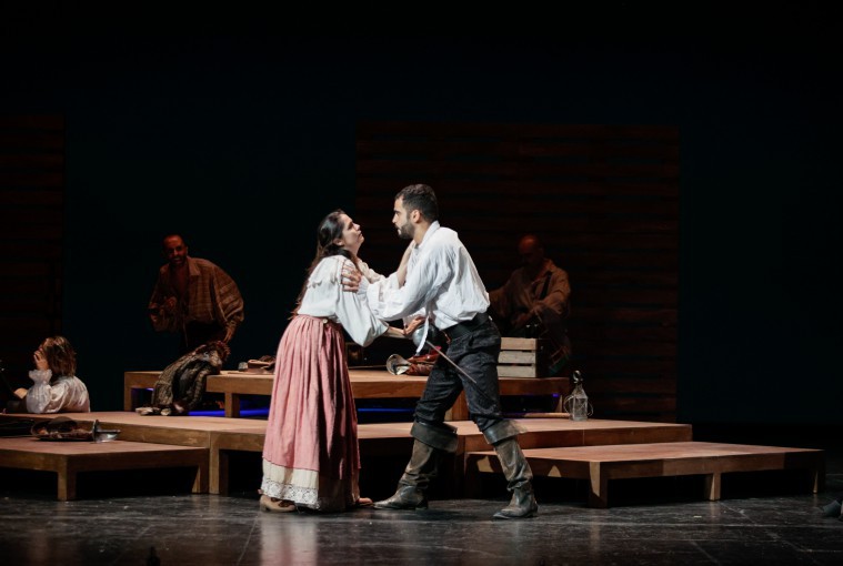El Teatro Pérez Galdós ofreció este martes un pase gráfico del montaje escénico ‘Como Chispa de Cañón’, que será estrenado en dicho espacio capitalino el sábado, 11 de noviembre a las 20:00h. El pase mostró una escena de la obra, una trepidante historia de piratas narrada en verso, que se sucede en la Canarias de finales del s.XVI.