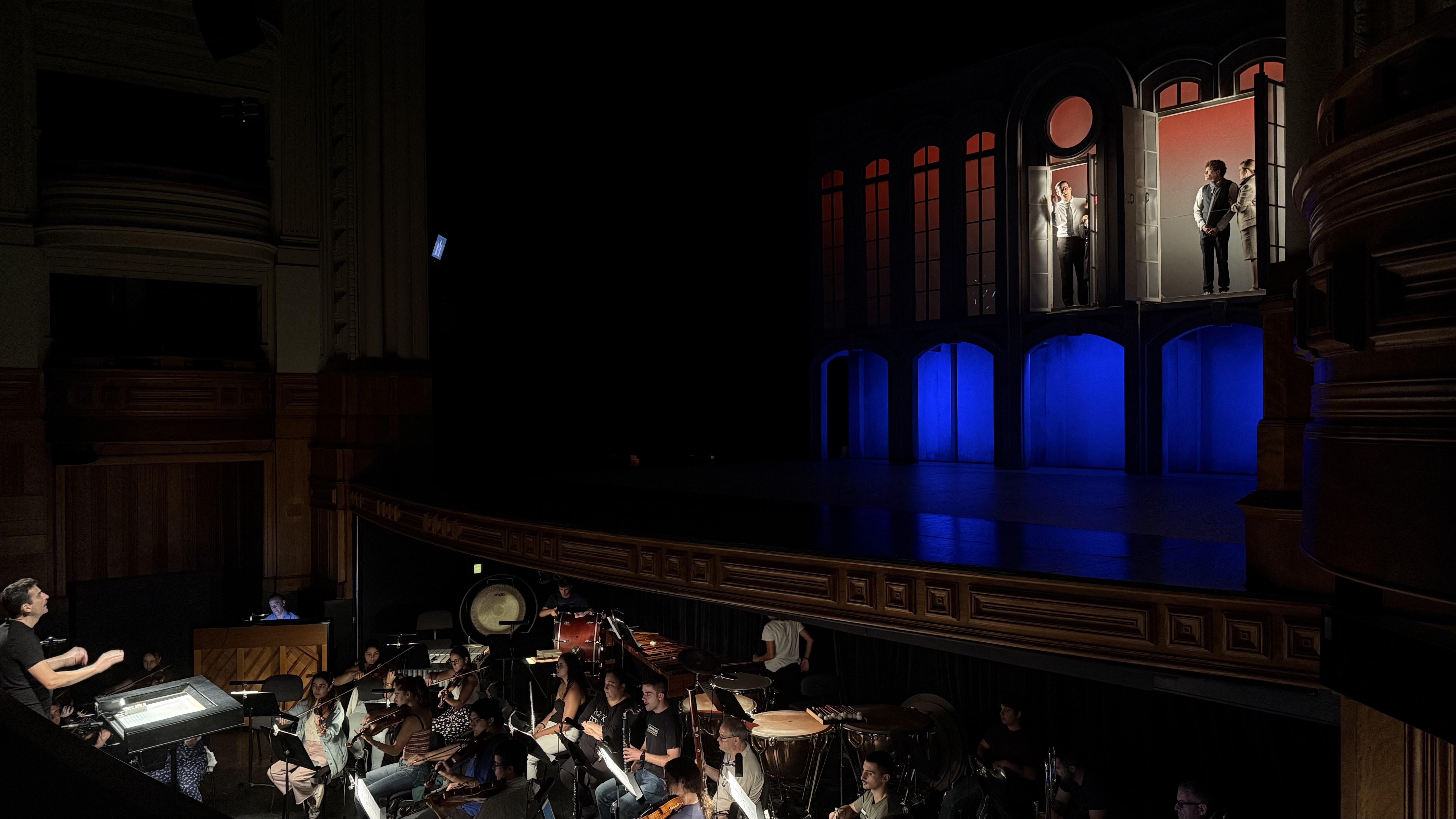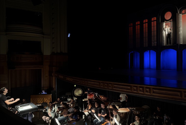 Bajo la batuta de Gonzalo Díaz Yerro, compositor y director musical, la Orquesta Inegale afina la partitura entre acordes. Sobre el escenario, Israel Reyes, director escénico, ajusta la posición de los actores, mide silencios y mira al fondo como si pudiera anticipar la emoción del estreno. A pocos metros, José Guadalupe, director artístico, observa el conjunto con esa mezcla de tensión y orgullo que precede a toda gran primera vez. Entre ellos, la ópera respira: el científico se convierte en hombre, y la historia, en música.